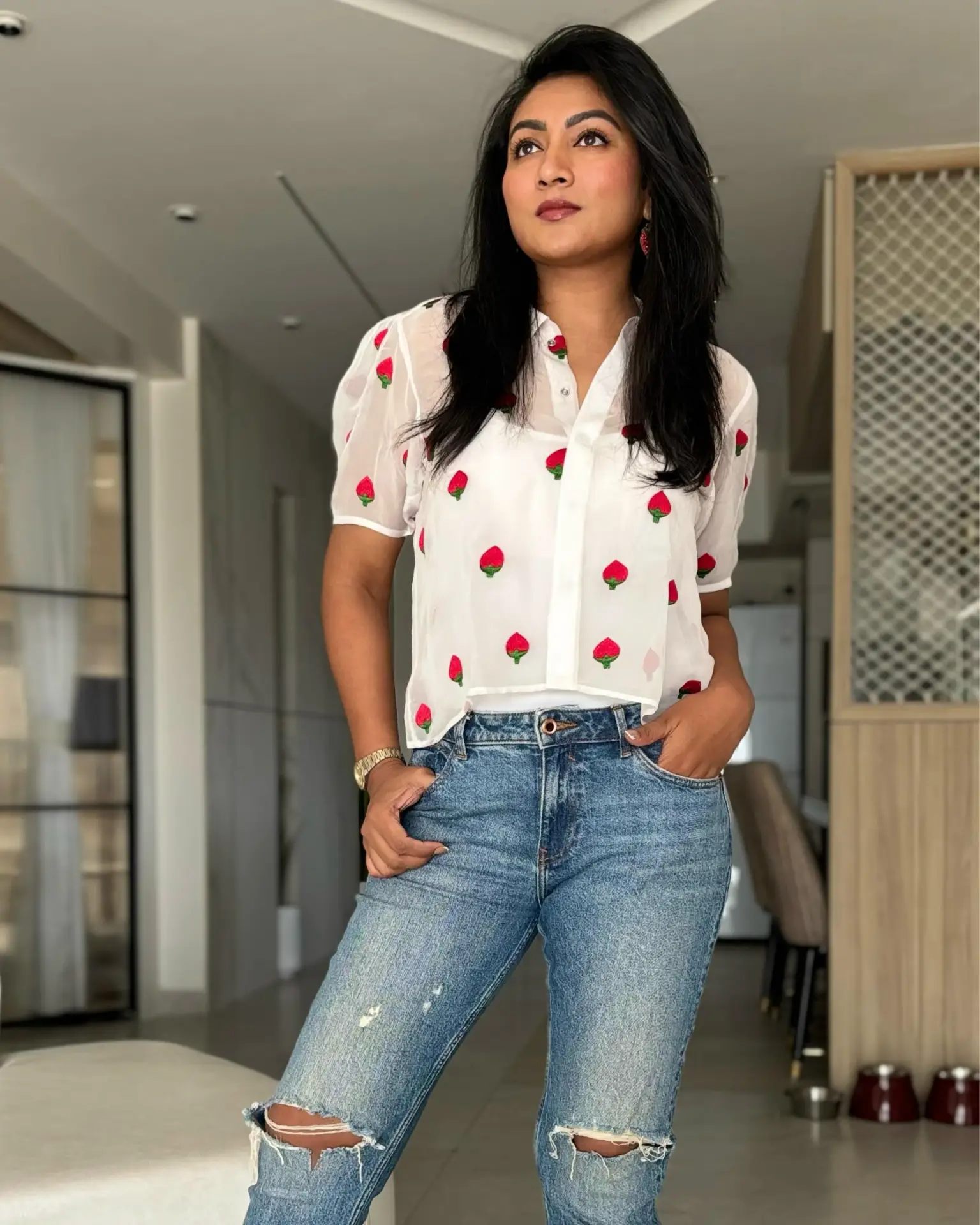 The Strawberry Shirt isn’t just a shirt—it’s a mood. Covered in delicate embroidered strawberries, it brings a dash of whimsy to your everyday style. Light, breezy, and crafted to perfection, this one’s for the days you want to feel effortlessly cute and cool.